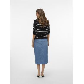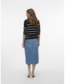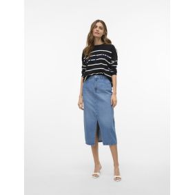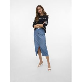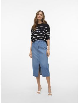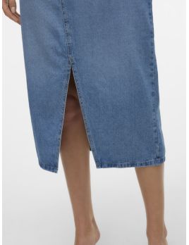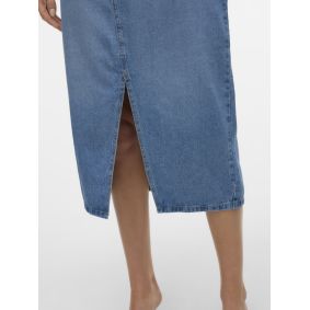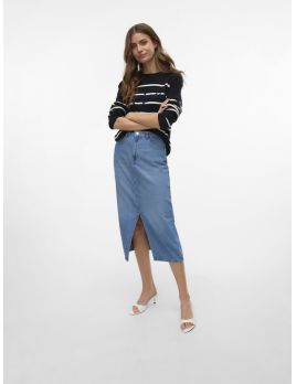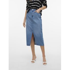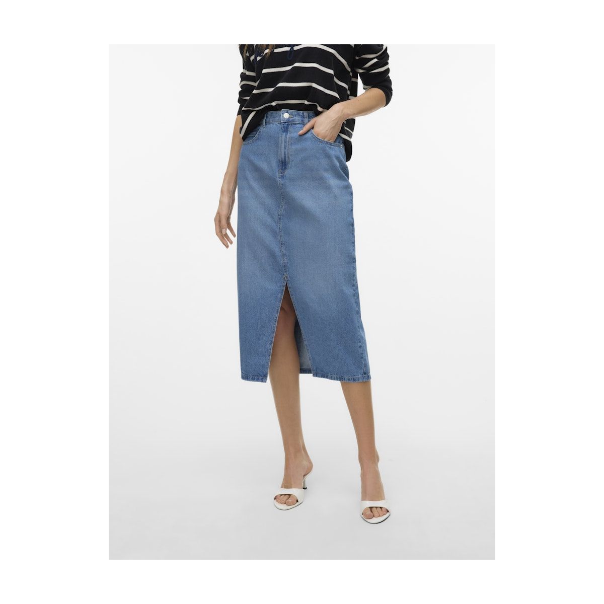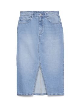Un esprit denim assumé : cette jupe midi à fente frontale et délavage bleu signe un look urbain, moderne et stylé !