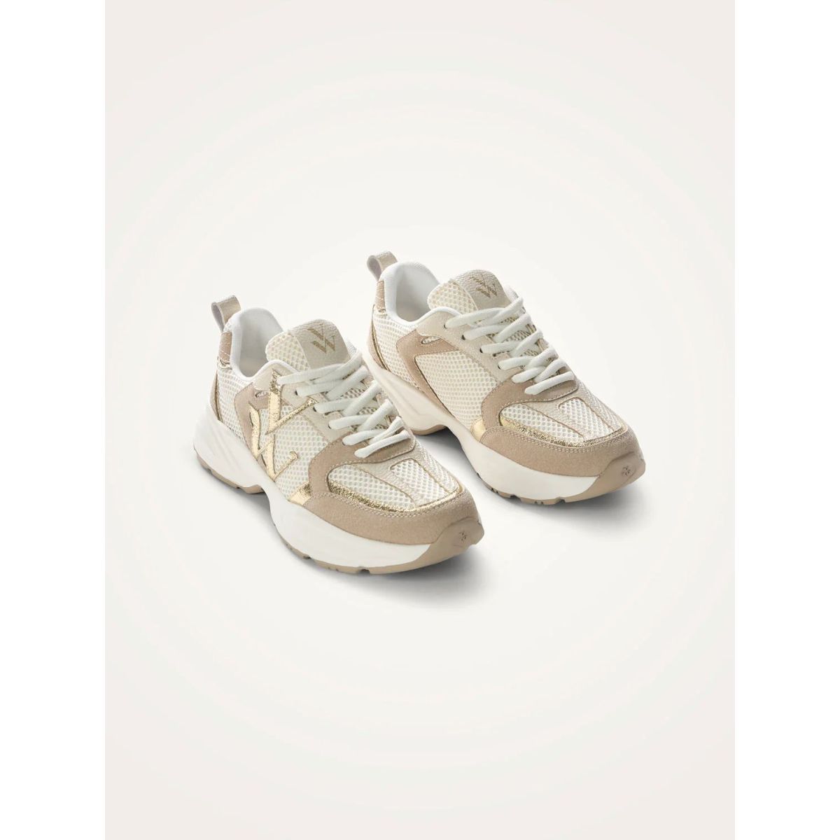 - Garants en similicuir beige clair effet grainé débordant sur l'empeigne