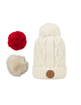 Un bonnet tout doux, avec ses 3 pompons interchangeables grâce à un système d'aimant puissant, pour assortir votre bonnet à toutes vos tenues et à votre humeur, tricoté avec amour sans matière animale et des matières premières 100% européennes. S'adapte à toutes les têtes grâce à son système GOMETEX.