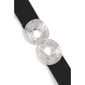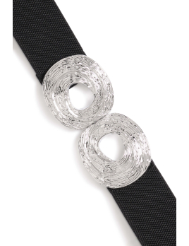 Apportez une touche d’élégance contemporaine à vos tenues avec cette ceinture élastique noire signée ICHI. Sa boucle argentée texturée, au design sculptural, attire le regard et souligne la taille avec style. Parfaite pour cintrer une robe, un manteau ou un pull oversize, elle combine confort et sophistication.