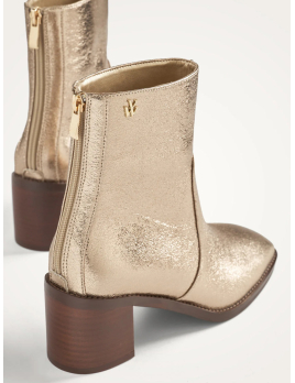 Illuminez vos looks avec ces bottines dorées pour femme, au design élégant et audacieux. Leur finition métallisée reflète la lumière pour un style sophistiqué et moderne, idéal aussi bien en journée qu’en soirée.