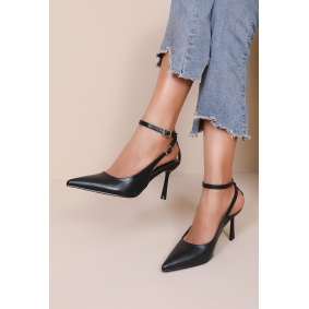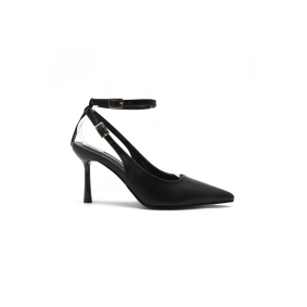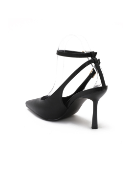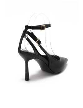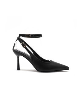Son design épuré, rehaussé de deux fines brides réglables à la cheville, apporte une touche de sophistication tout en assurant un maintien parfait. La ligne effilée et le bout pointu allongent la silhouette, tandis que le talon aiguille élancésublime la jambe avec élégance.