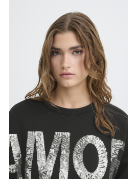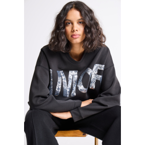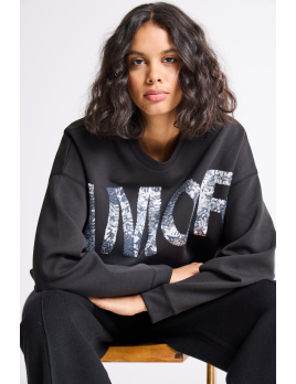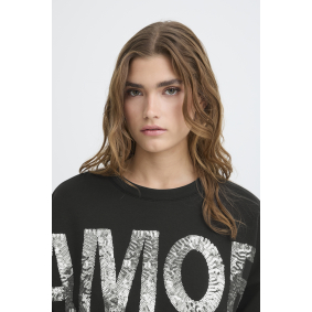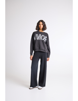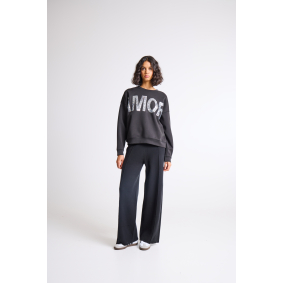 Affirme ton style avec ce sweatshirt noir ultra-tendance, orné du mot AMOR en sequins argentés. Sa coupe oversize offre un look à la fois décontracté et sophistiqué, parfait pour twister une tenue du quotidien ou ajouter une touche lumineuse à un ensemble plus chic.