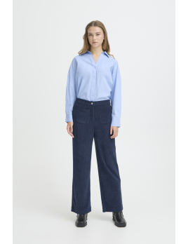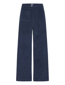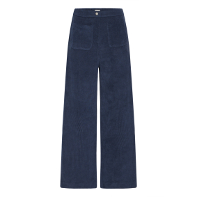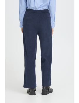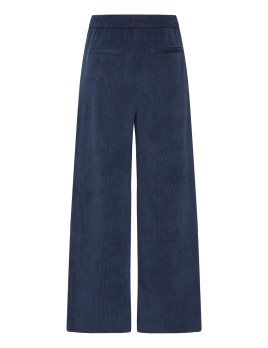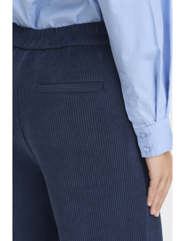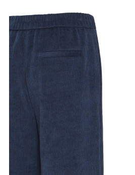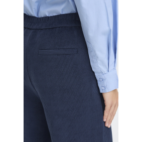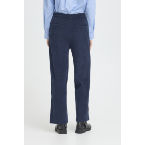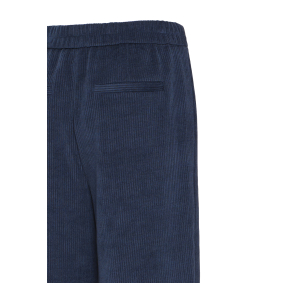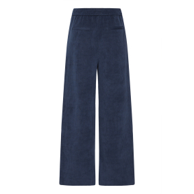 Ce pantalon bleu marine en maille côtelée conjugue confort, style et modernité.