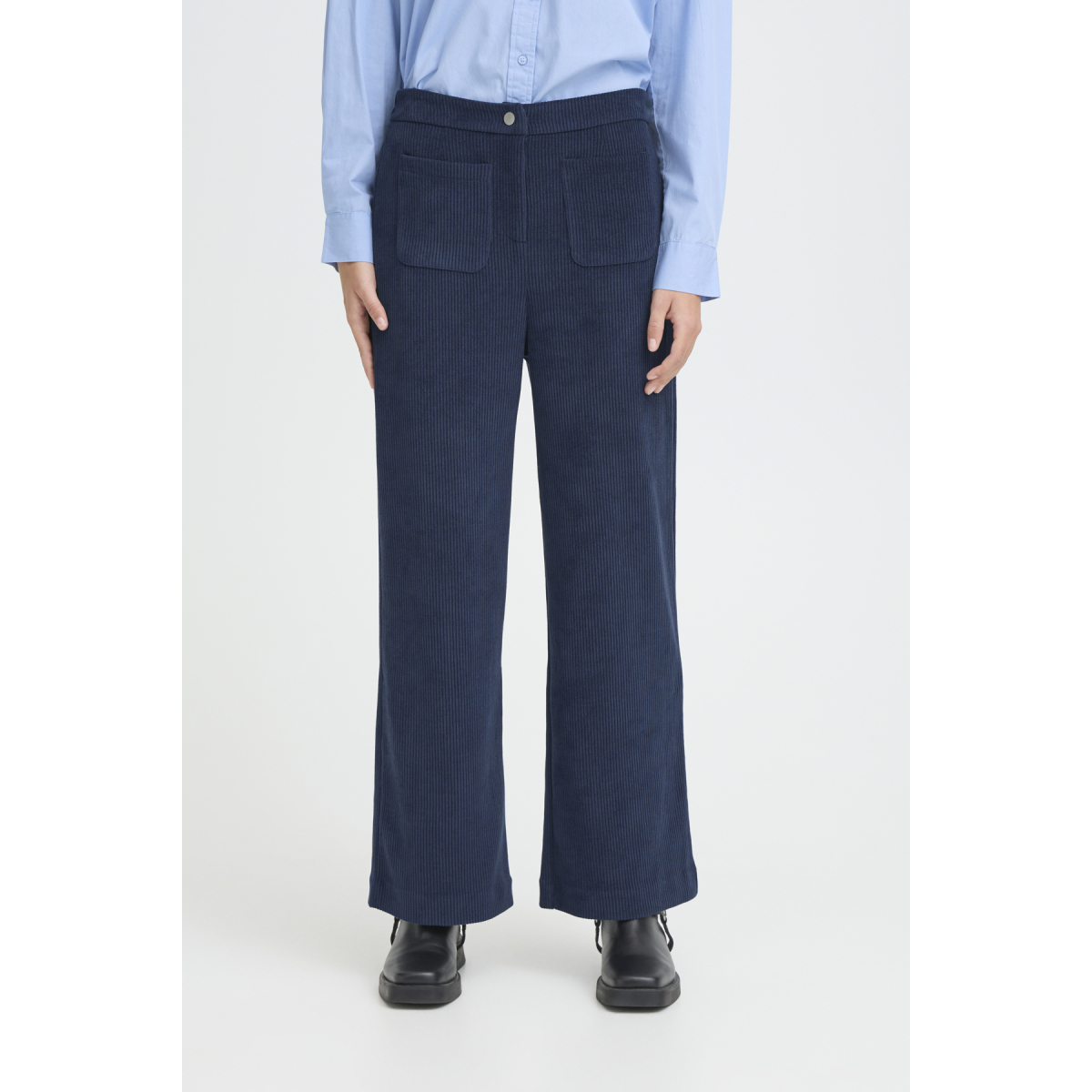La taille semi-élastiquée et les poches plaquées à l’avant offrent un look à la fois casual et soigneusement structuré.